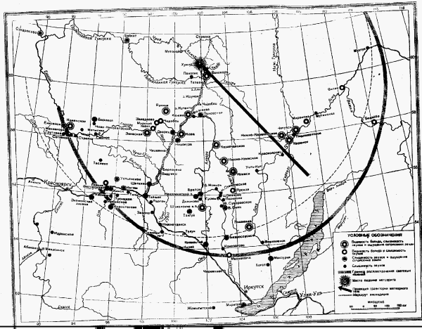 Yes, I am not joking: it is the only known drawing by eyewitness of so-called ‚Tunguska meteorite‘ in flight! It was by T.N. Naumenko from Kezshma (about 214 km to the SSE from the Tunguska epicenter), who described the ‚meteorite‘ as a luminous moon-sized cloud. His account is often quoted as one of the main arguments for ‚Tunguska meteorite‘, but his sketch is practically unknown. I have discovered it in the 1941 year issue of METEORITIKA, and reproduced in my publications, including my book on Tunguska. If you look at the picture, you will understand why it was quickly ‚forgotten‘ by supporters of the ‚Tunguska meteorite‘.